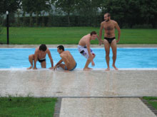 la parte ridicola: i bomber in acqua, le bombers gettate in acqua vestite senza pietà