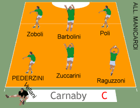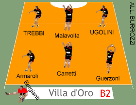 | Ecco la seconda candidata del Girone B alla promozione. Dopo la splendida cavalcata della scorsa stagione, si ripresenta al via ulteriormente rafforzata e sembra pronta a concedere la rivincita alla squadra vignolese. L’arrivo di Pederzini permetterà di scegliere sull’attacco da posto 4 (considerando la diagonale Raguzzoni-Zoboli tanto forte quanto insostituibile). La banda ex-Casinalbo si affiancherà infatti a Malaguti, Poli, Negrini e Barbolini, con quest’ultimo che potrebbe essere dirottato al centro, insieme a Zuccarini. Arriva anche Ciaccia come vice-Raguzzoni, concedendo la possibilità a quest’ultimo di tirare fiato nei momenti più critici (vedi distorsione alla caviglia dello scorso anno), cose impossibile la passata stagione. Inoltre da segnalare l’arrivo di Manicardi, che sostituirà Avallone nella (impossibile) conduzione di questo branco di matti. Se il buongiorno di vede dal mattino, non riuscirà a mangiare il panettore. Tutti i fondamentali sono ben coperti (piccola incognita, ma proprio piccola piccola, rappresentata dalla ricezione). Riusciranno i ragazzi di Bulgarelli a ripetere l’impresa della scorsa stagione? Difficile, visto l’incremento di difficoltà del girone… ma probabile |