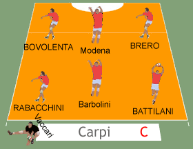 | Carpi è senza ombra di dubbio la favorita del girone A, grazie agli acquisti di Battilani (regista dal talento puro), di Bovolenta (opposto dal braccio pesante), Brero e Rabacchin (da Novellara). Da sottolineare anche la conferma di giocatrici importanti come Arianna Modena e Barbolini (centrali di indiscusso valore). Sebbene il girone risulti decisamente ostico, le ambizioni delle squadra di Malavasi sono più che giustificate, soprattutto se si pensa a quanto di buono ha fatto nella seconda parte dello scorso campionato. Nessun punto debole, reparti potenti ed equilibrati, esperienza e gioventù. Unica incognita potrebbero essere il tempo necessario alla creazione dell'amalgama |