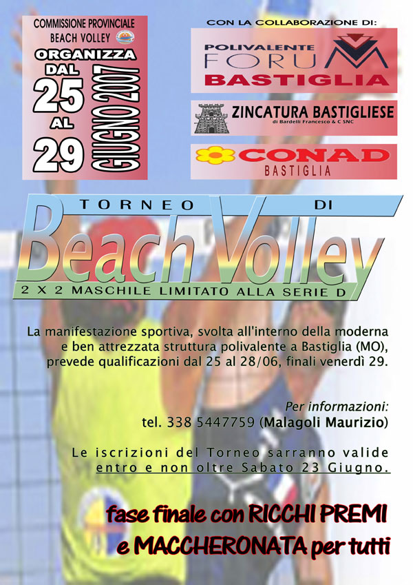 TORNEO DI BASTIGLIA 25-29 giugno - Polivalente Bastiglia 2x2 limited D iscr Maurizio 338.5447759 |