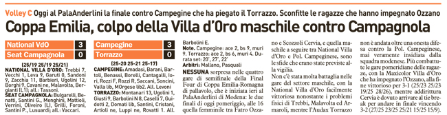 UN PO' DI PAGELLE di Alessandro Trebbi (parte 1) PALLAVOLO VILLA D’ORO voto