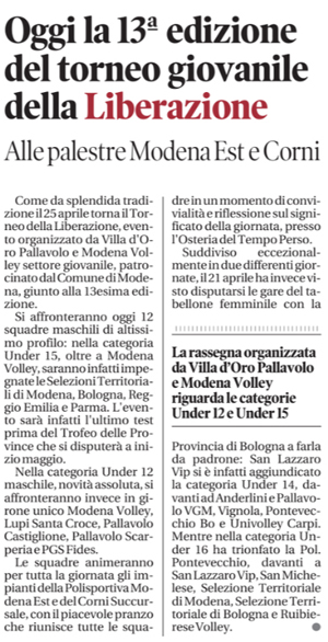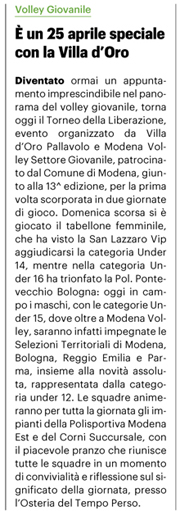 | a seguire Pad. A: Modena Volley - Selezione Terr. Mo 0-2 (22-25 20-25) |