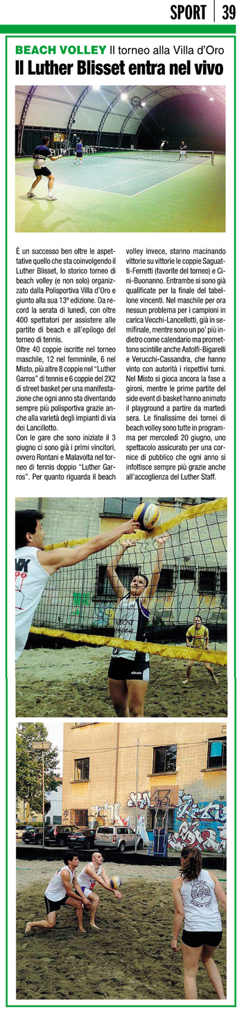 TENNIS LUTHER GARROS (set unico ai 9 con eventuali vantaggi) |