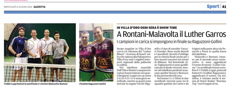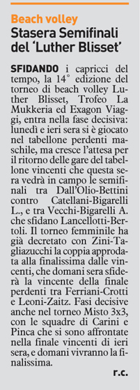 | E2 21.20: vecchi-bigarelli a vs lancellotti-bertoli 1-2 (18-20 15-12 9-15) | FINALE 21.30: zini-tagliazucchi vs ferriani-crotti 1-2/1-0 (12-15 15-13 13-15/25-20) |