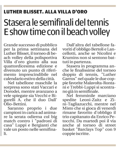 | X3 21.30: damiani-rosati vs caiumi-melli 1-0 (25-11) | C1 21.40: scanzano-garuti vs catellani-bigarelli 0-2 (13-15 6-15) |