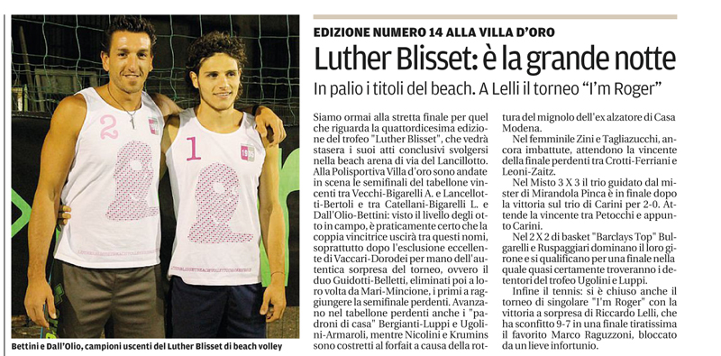 | W1 22.10: bergianti-luppi vs vecchi-bigarelli a 0-1 (19-25) | FINALE 22.30: dall'olio-bettini vs lancell.-bertoli 1-2/0-1 (16-14 9-15 13-15/17-25) |