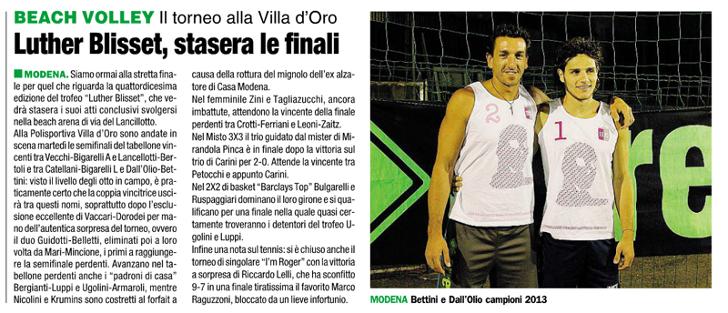 | Vecchi (Torrazzo C) - Bigarelli A (Correggio B2) | Rastelli (beacher) - Calanca (San Damaso B2) | Bergamini (Villa) - Ghezzo (Villa) - Manicardi (Villa) Sbreviglieri (Villa) |