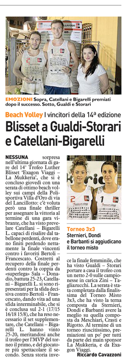 | B9 19.30: astolfi-bonetti vs righi-cremaschi 2-0 (15-12 15-6) | B15 18.30: luppi m-martinelli vs sandoni-agazzani 2-1 (15-11 14-16 15-12) |