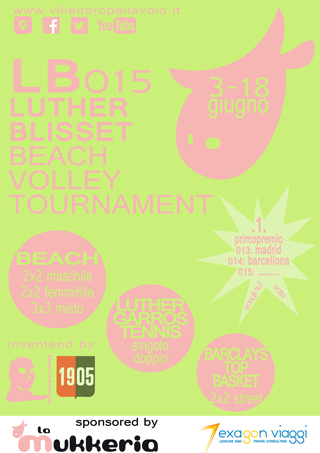 | BEACH TABELLONE MASCHILE: dal 3 al 18 giugno (iscr. 20€/persona) BEACH TABELLONE FEMMINILE: 4-9-11-15-18 giugno (iscr. 20€/persona) BEACH TABELLONE MISTO: 12-17-18 giugno (iscr. 20€/persona) TENNIS SINGOLO "I'M ROGER": 11-12-17 giugno (iscr. 15€/persona) TENNIS DOPPIO "LUTHER GARROS": 4-8-9 giugno (iscr. 15€/persona) BASKET "BARCLAY TOP": 8-9-10-11-15-16 - 17 giugno (iscr. 15€/persona) |