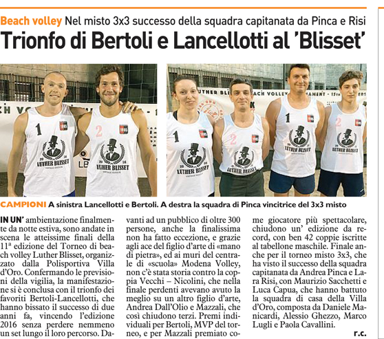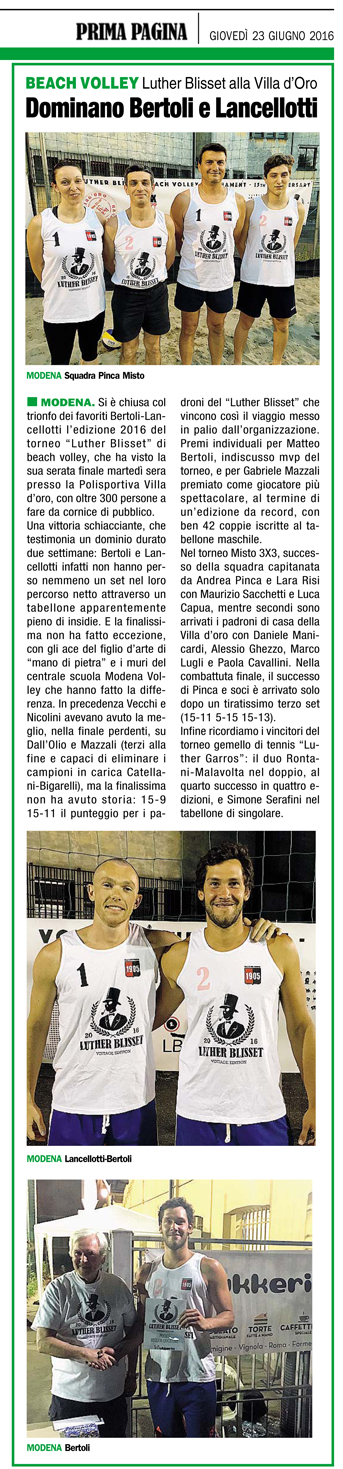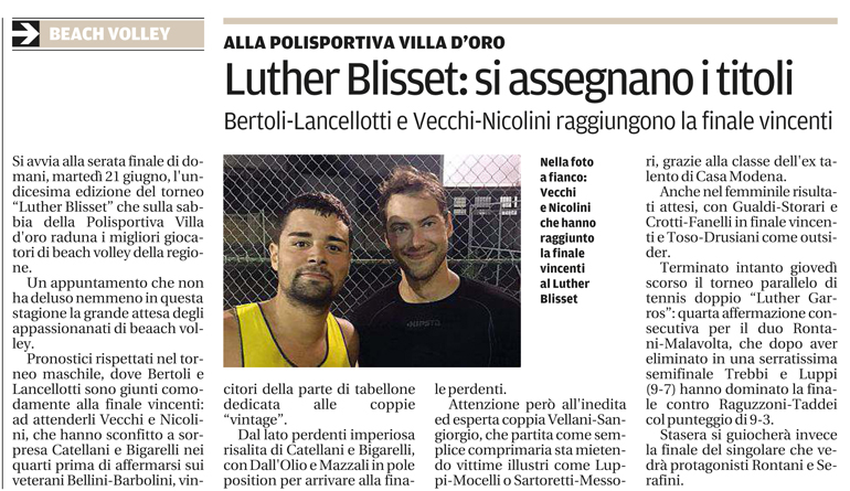 | FINALE VINCENTI 22.00: bertoli-lancellotti vs vecchi-nicolini 2-0 (15-12 15-13) | FINALISSIMA MASCHILE 22.00 bertoli-lancellotti vs vecchi-nicolini (15-9 15-11) |