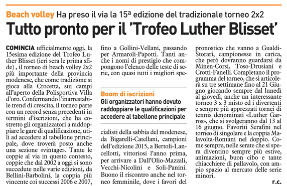 BEACH VOLLEY: 2x2M open - 2x2F open - 3x3misto (limited 1°Div/M - Serie D/F) TENNIS: LUTHER GARROSdoppio TENNIS: I'M ROGER singolo |