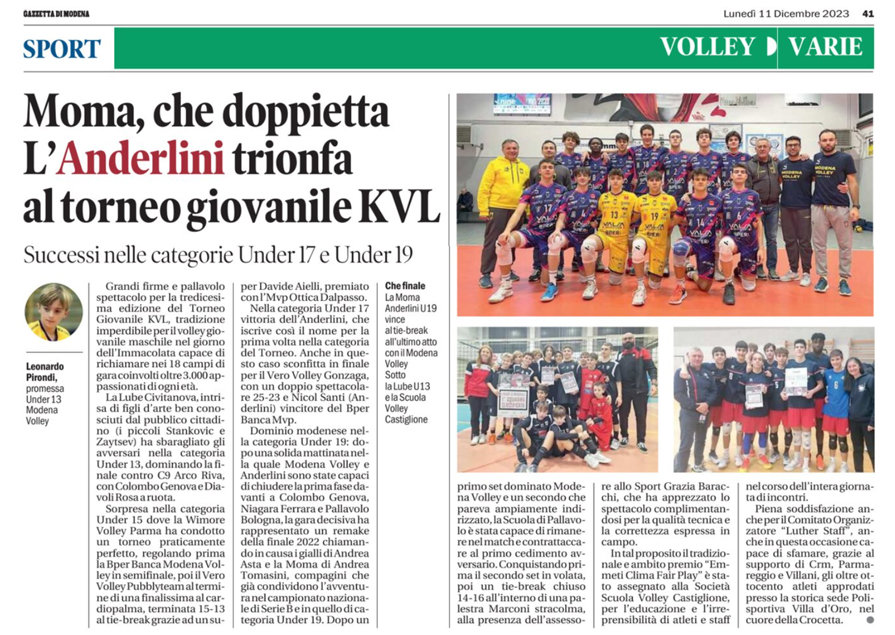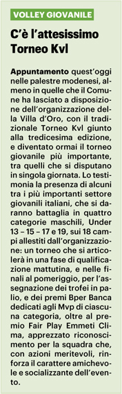 | ore 09.00: BPER Modena Volley - Niagara 4 Torri Ferrara 2-0 (25-20 25-21) |