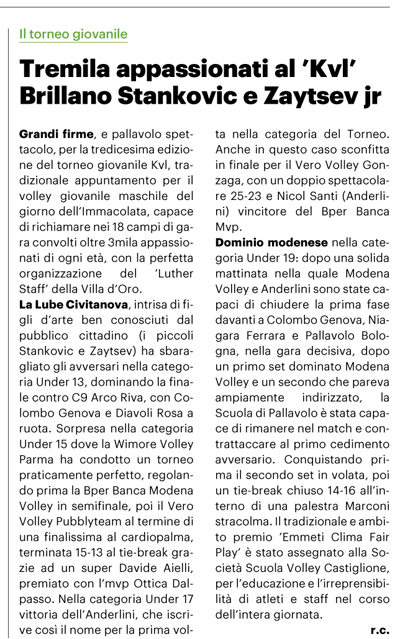 | a seguire: Lupi Santa Croce Pi - BPER Anderlini 0-2 (17-25 11-25) |