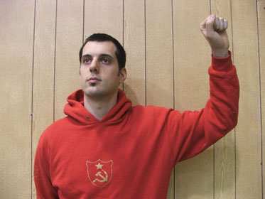 Il bomber collega un particolare della felpa rossa con il braccio sinistro