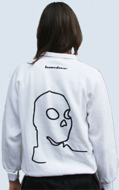 dietro la maschera grande e la scritta 'bomber' sotto al collo