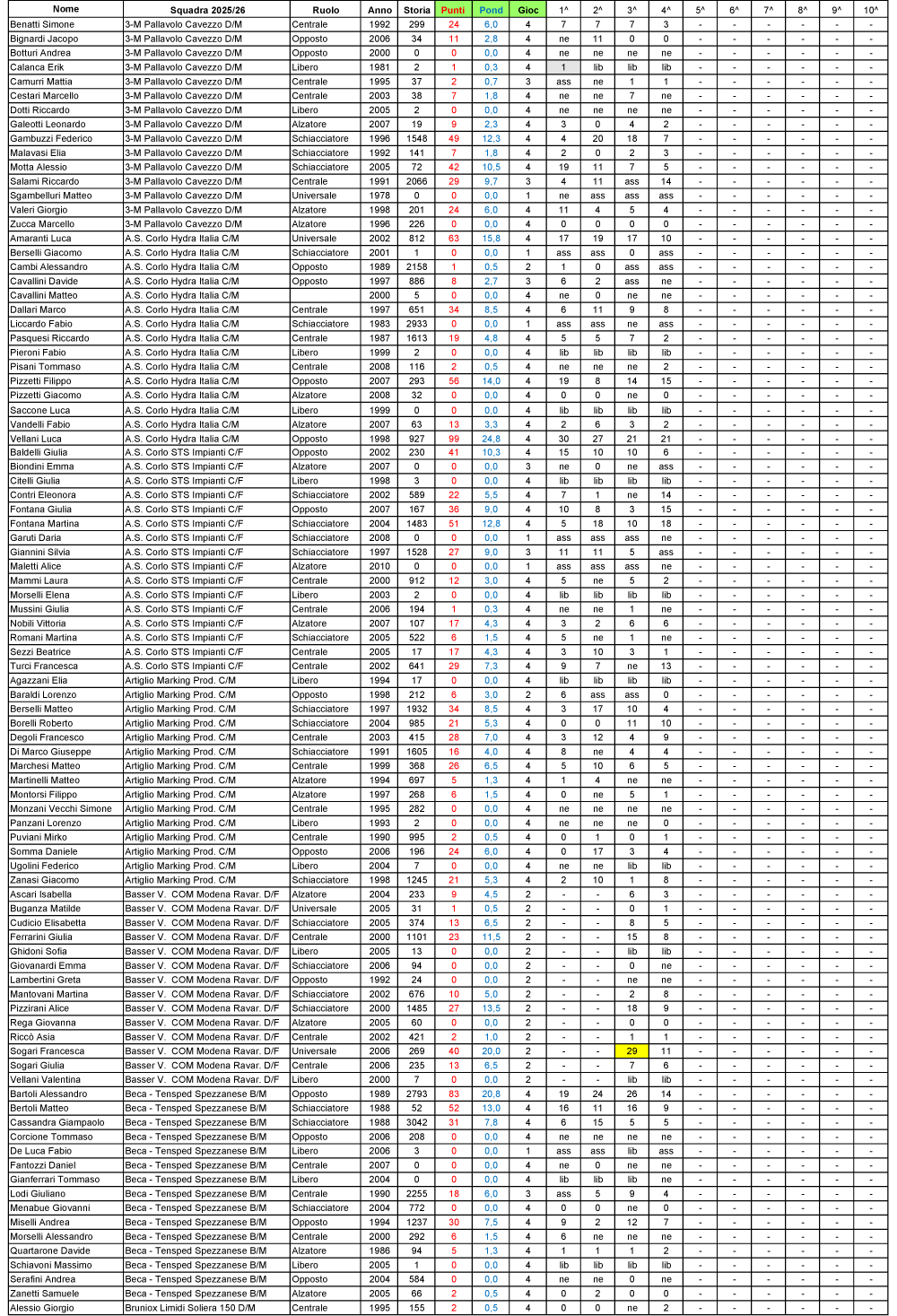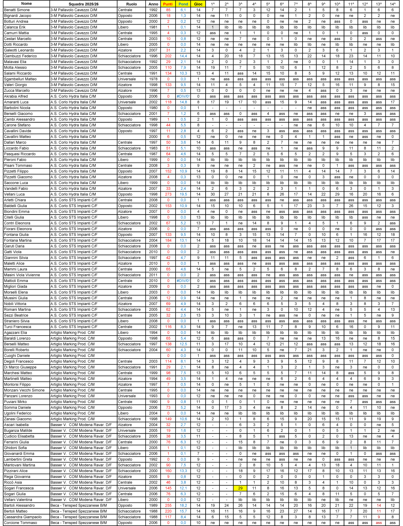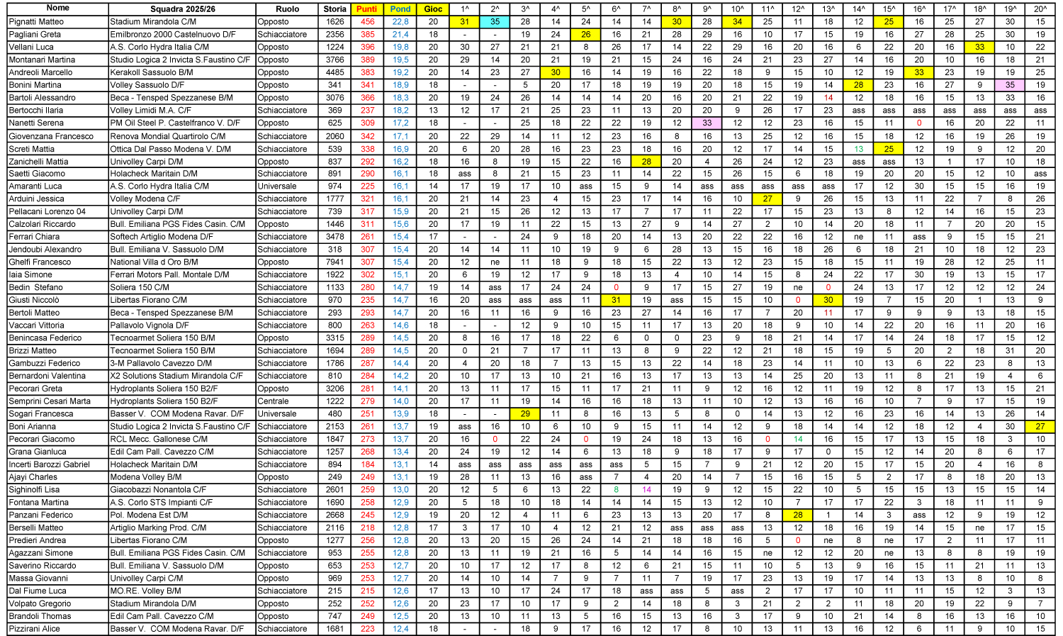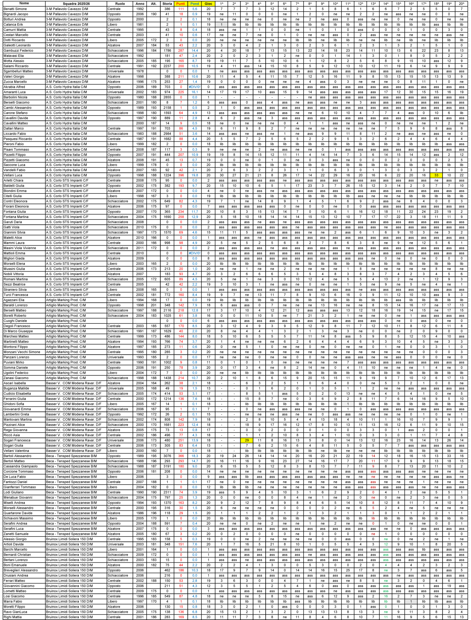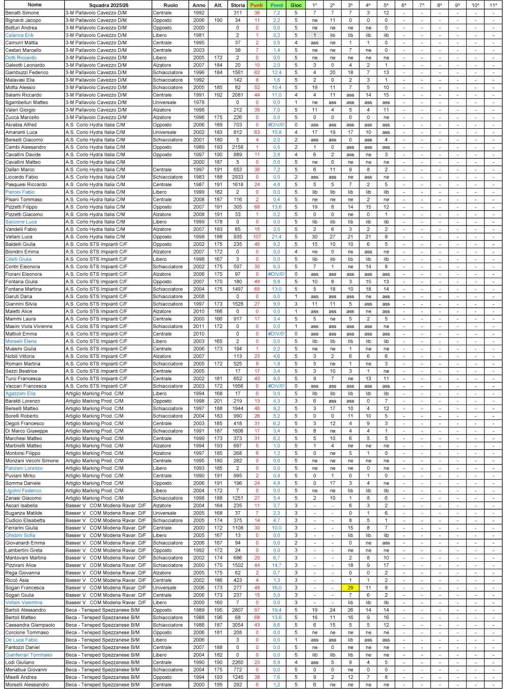 | SUPERBOMBER 2025/26 - I TOP (un infinito grazie a Riccardo Cavazzoni per l'immane lavoro di raccolta dati e relativo aggiornamento) |