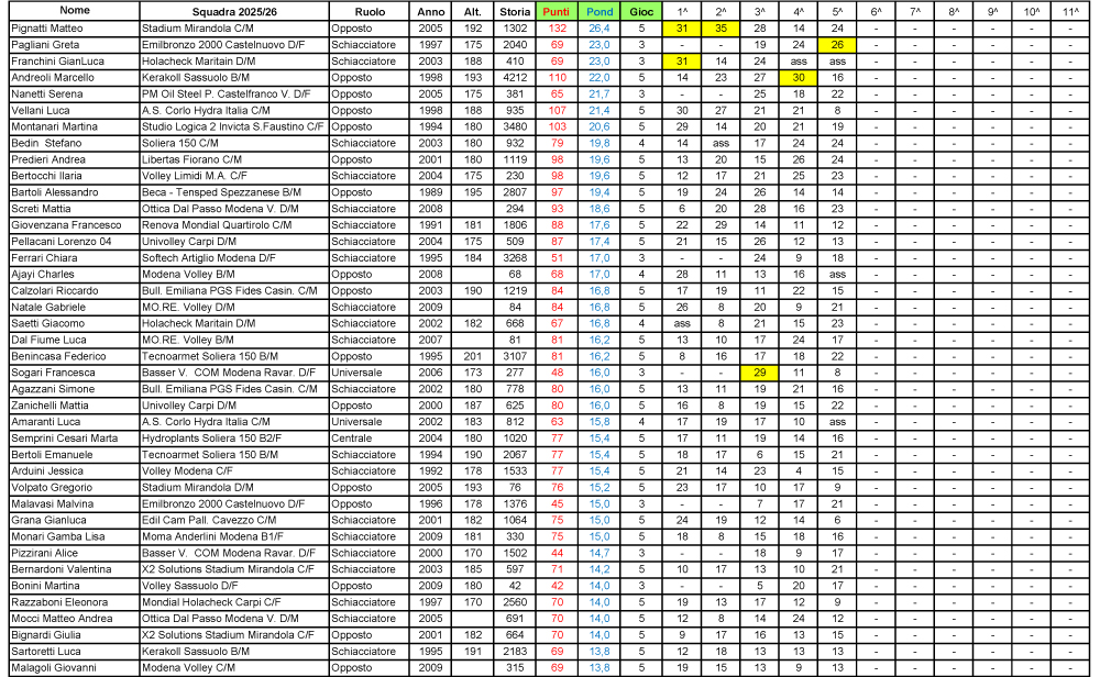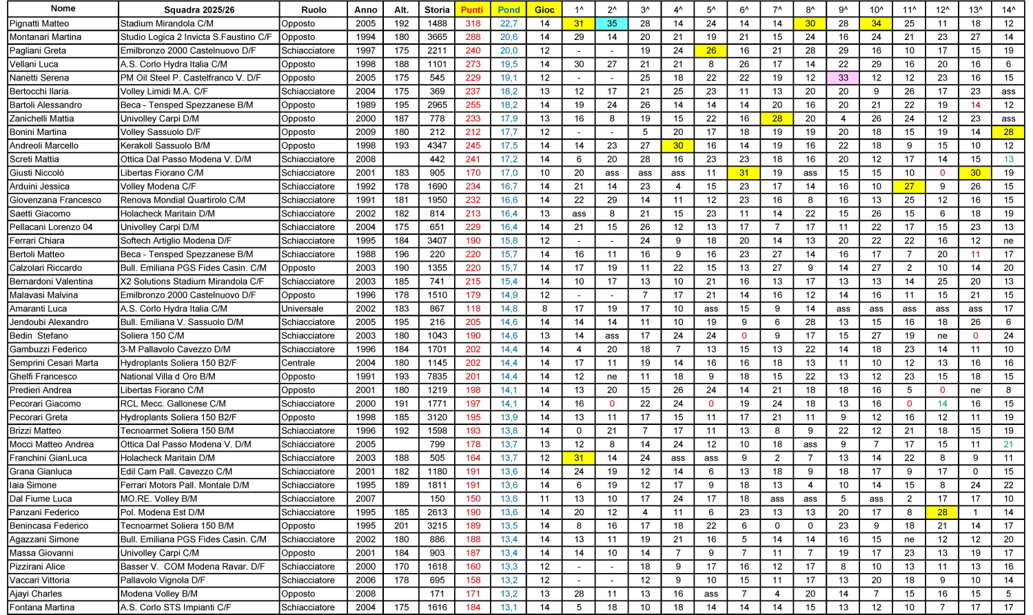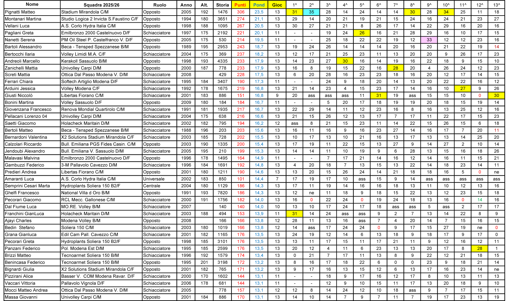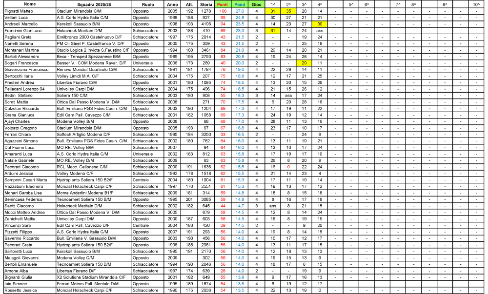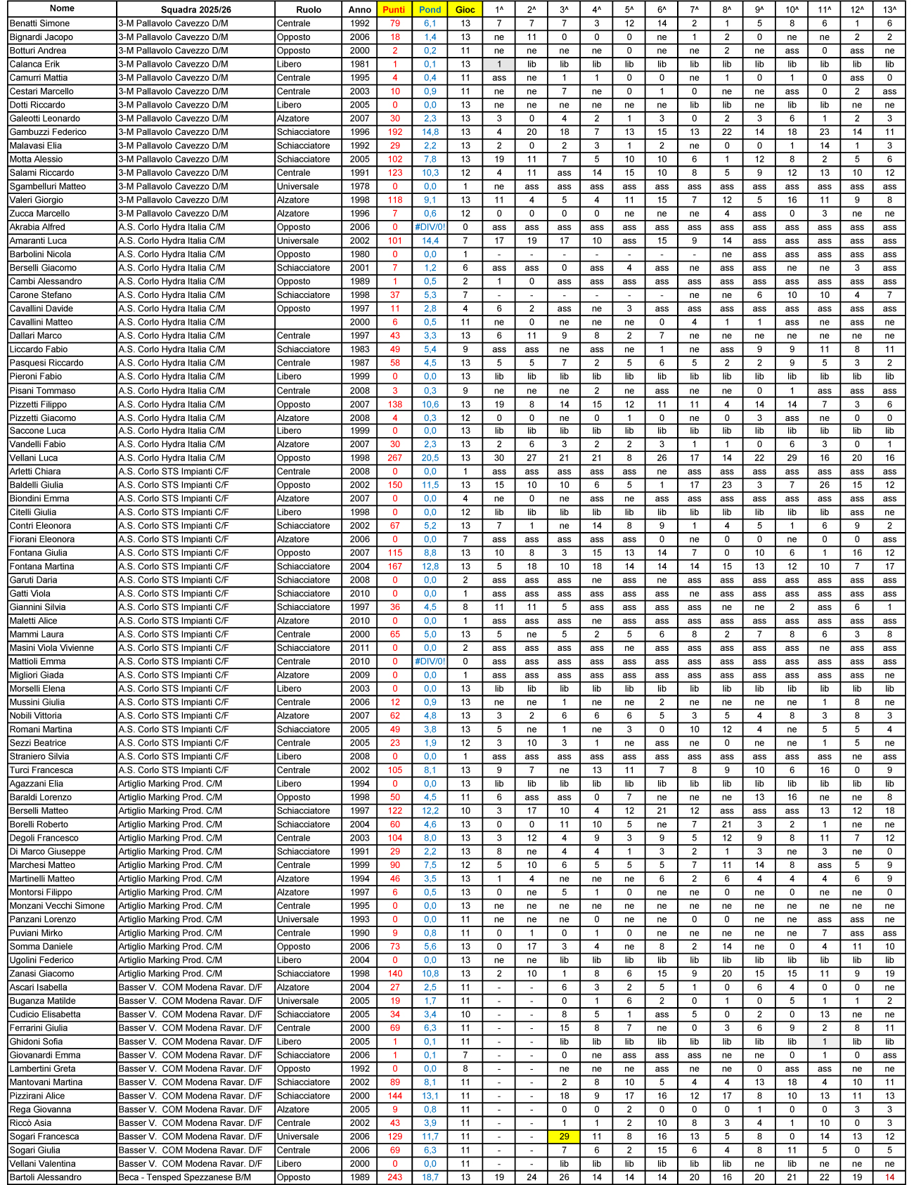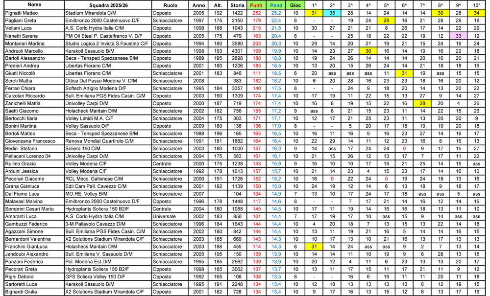 | SUPERBOMBER 2025/26 - I TOP (un infinito grazie a Riccardo Cavazzoni per l'immane lavoro di raccolta dati e relativo aggiornamento) |