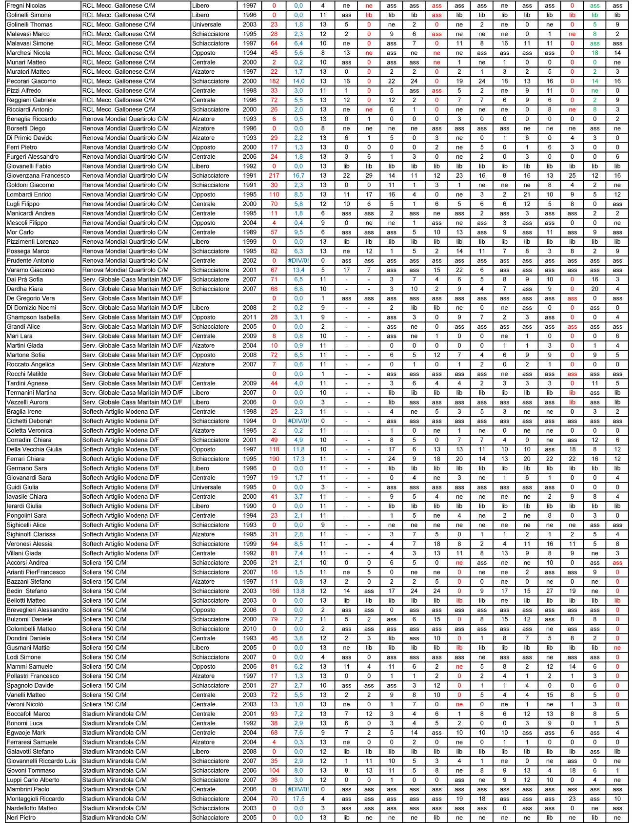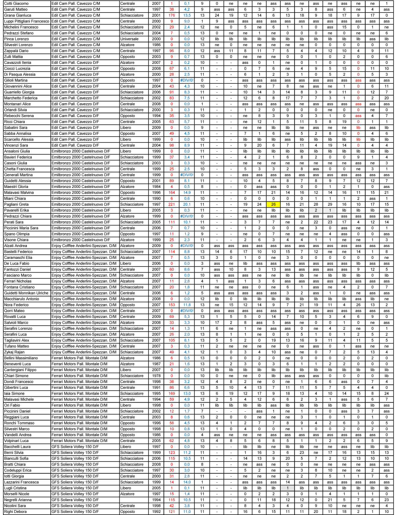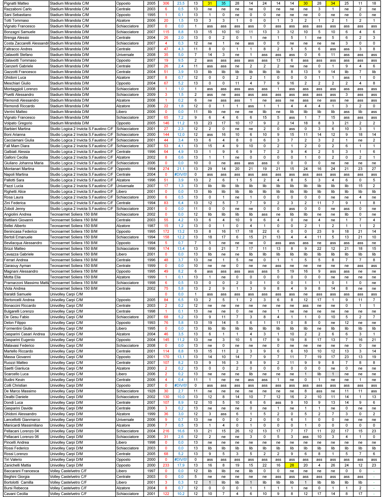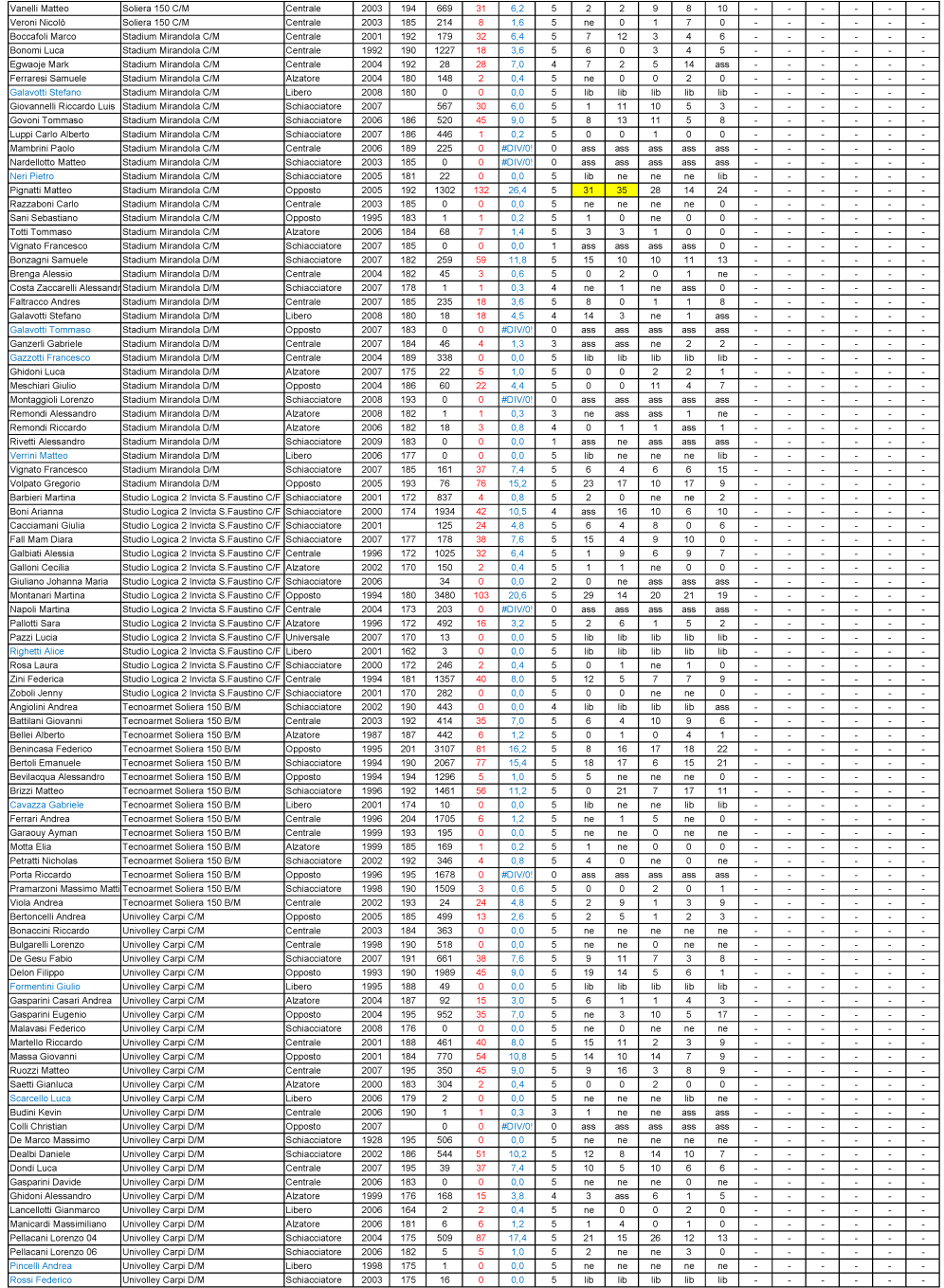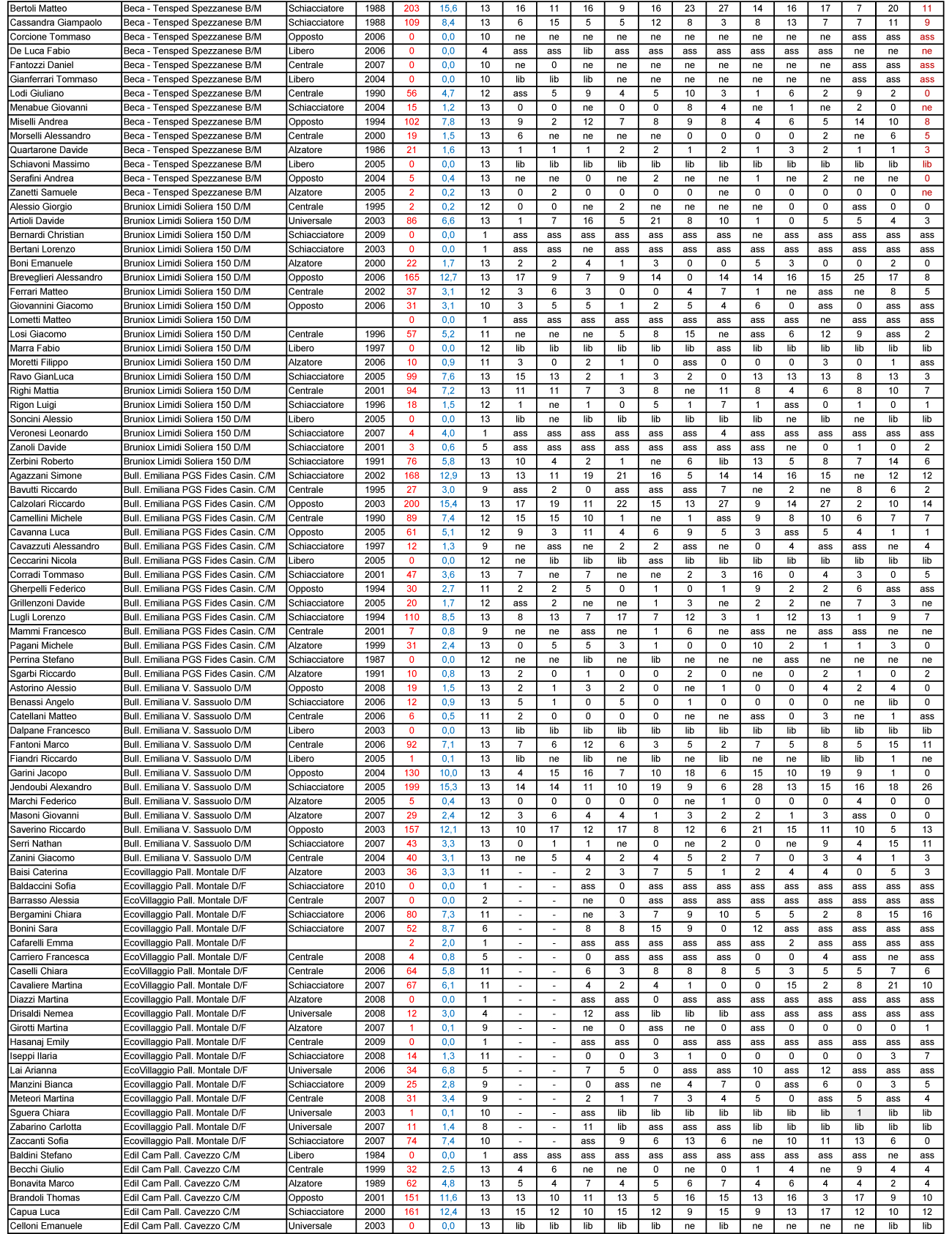 | SUPERBOMBER 2025/26 - I TOP (un infinito grazie a Riccardo Cavazzoni per l'immane lavoro di raccolta dati e relativo aggiornamento) |